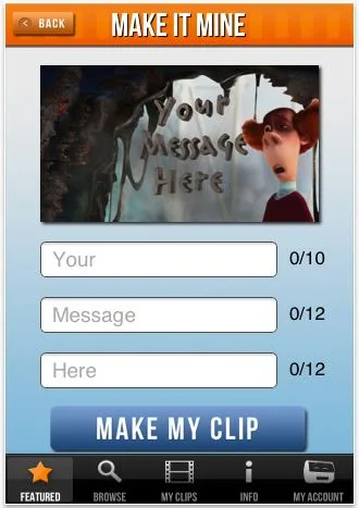 Right now, there’s a short list of movie clips available to customize, from Despicable Me, Hop, American Pie, The Fast & The Furious, Sixteen Candles, and a couple more. The list of movies available is definitely very limited with more to come soon.