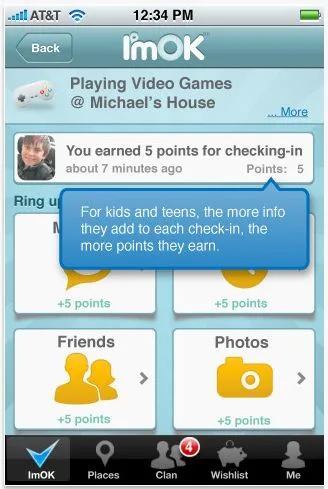 Once you have an account established, you create a network of trusted individuals and then your kids are free to check in to the app for points. The more information they include the more points they can earn — and it saves you from having to ask, where are you going? Who are you going with? When will you be home?