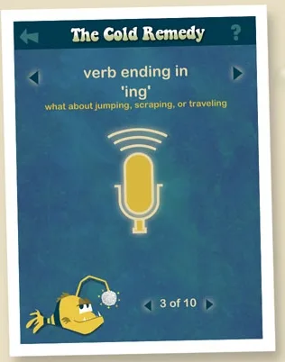 Graphics are easy to understand, though kids will need to be able to read to know what type of word they need to say into the microphone. Don’t worry if your kids forget what an adjective is–SparkleFish gives you examples like “smooth, ruddy, or slimy.” It’s a great way to get a little grammar practice into the day without it feeling like a lesson.