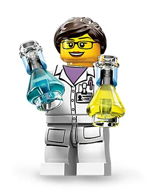 Meet the new female LEGO scientist minifig who’s wielding two Erlenmeyer flasks, isn’t dressed in a pink lab coat, and her torso doesn’t include cleavage.