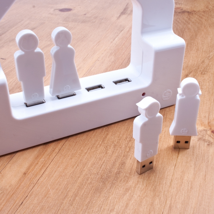 From one of our fave shops See Jane Work (which is an awesome source for smart home office items by the way), this USB hub just might bring some order to my own house. Connect it to your computer, or to a wall outlet with a separate adapter, and then have everybody plug their gadgets into the four USB ports. But what I think makes it really special, are the  4GB USB drives shaped like people for each of your family members. You can customize it to have two boys, two moms, one dad and three boys, Brady Bunch style.