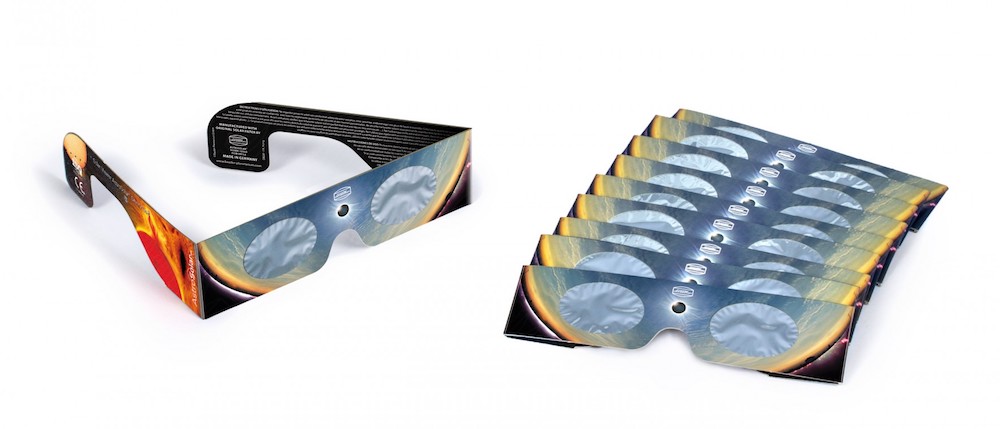 For the next level protection, try these AstroSolar paper glasses from the Baader Planetarium in Germany (seen at top). They reduce the sun’s intensity by 99.999%. Plus, they give 100% UV and IR protection. That’s about the best you can do with disposable glasses. The 5-pack runs you closer to $20, so they’re a little more expensive, but they have a sci-fi look that might pique the interest of an otherwise uninterested teen.